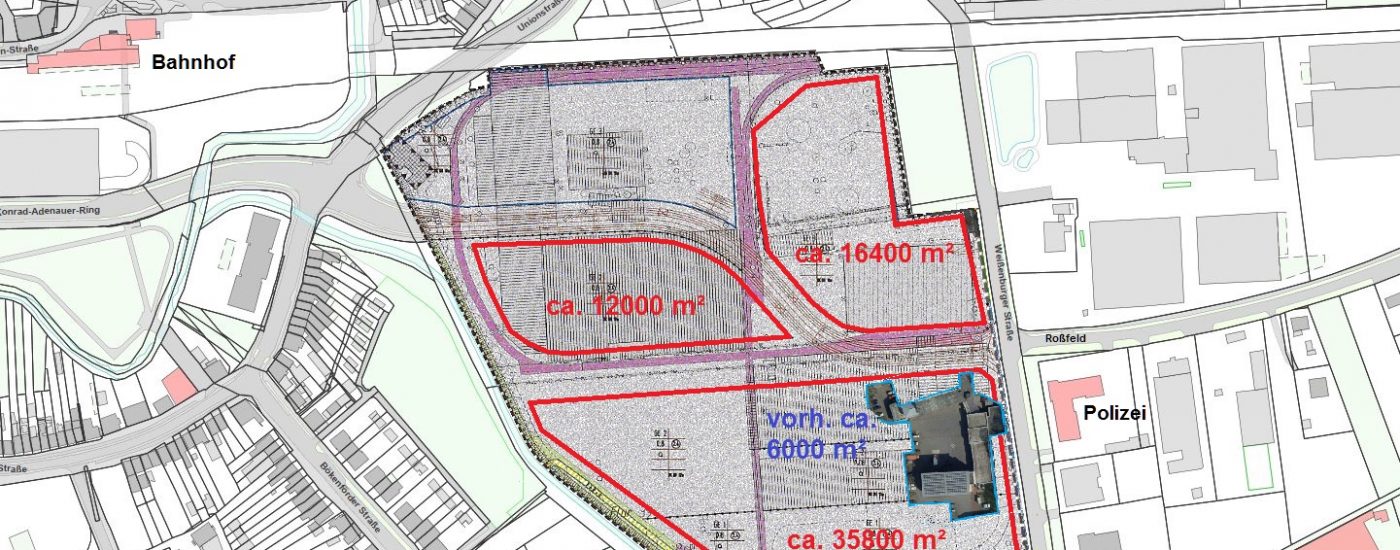 Welche Dimension dieses Areal nahe der Innenstadt hat wird an der Grafik deutlich. Hier ist die aktuelle Fläche der Feuerwehr an einer beliebigen Stelle in das Gelände integriert. Diese Fläche wirkt im Verhältnis zur Gesamtgröße wie eine Briefmarke auf einen DIN A4 Umschlag. Daher bietet sich hier auch ausreichend Fläche für die Post und weitere interessante Entwicklungen. Es wird Zeit zu handeln!